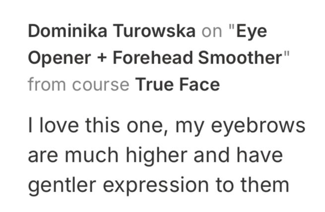 "I am a vocalist, and I've even noticed the audience responding differently during performances since getting rid of my facial tension. My face is much more open and relaxed, and I am so happy to have the tools to keep this up and really learn what my face needs."